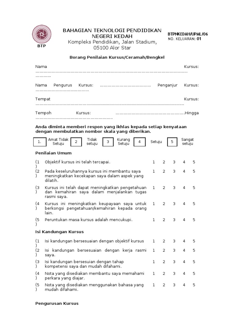 Borang Penilaian Kursus Ceramah Bengkel