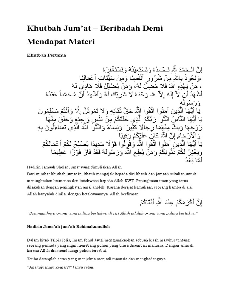 DOC) Contoh Teks Khutbah Jumat Singkat | Samodra Sam - Academia.edu
