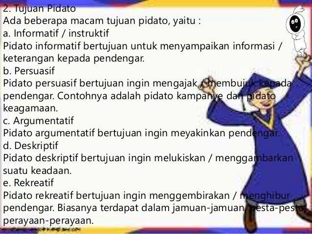 sebutkan tujuan dari kegiatan pidato - Brainly.co.id