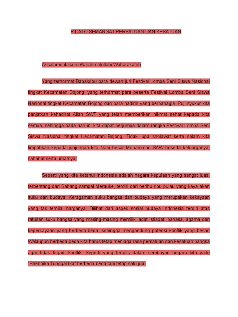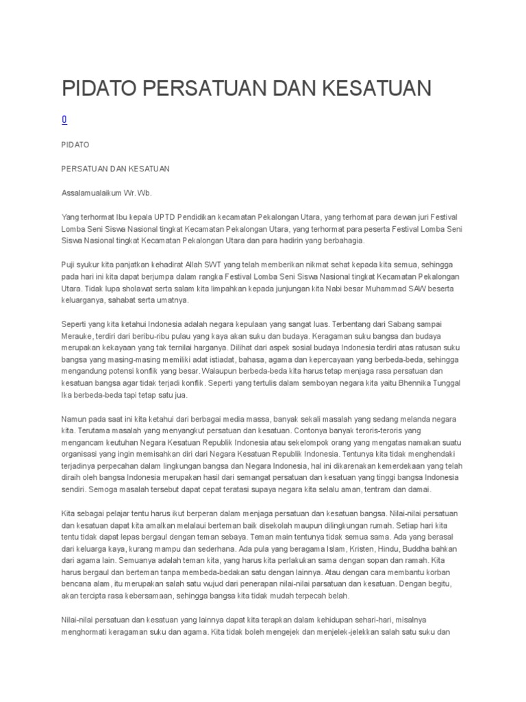 Contoh Naskah Pidato Tema Persatuan Dan Kesatuan Bangsa