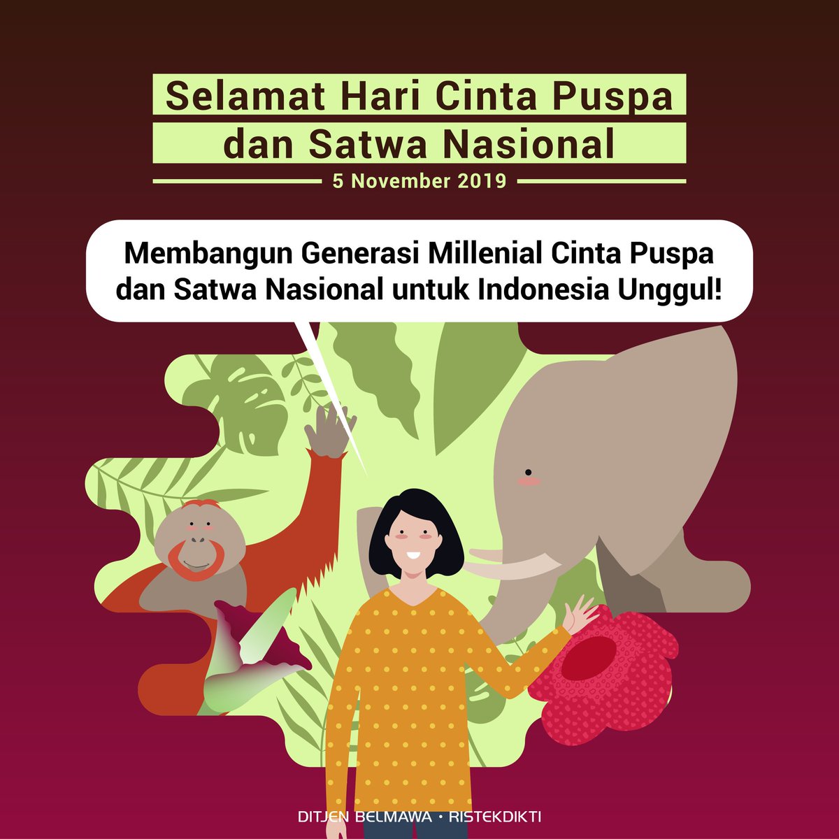Ditjen Dikti Twitter: “Halo #SobatBelmawa ! Tahukah kamu tanggal 5 November diperingati sebagai Hari Cinta Puspa dan Satwa Nasional (HCPSN). Peringatan ini bertujuan untuk meningkatkan kepedulian, perlindungan, pelestarian puspa dan satwa