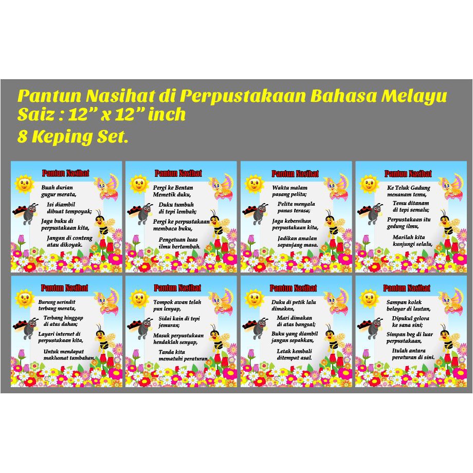 POSTER CANVES PANTUN NASIHAT DI PERPUSTAKAAN, 8 KEPING SET …