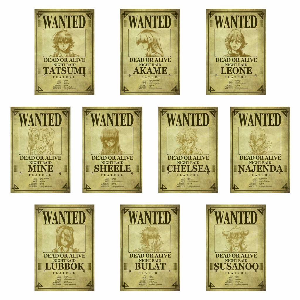 Poster Wanted Anime Akame Ga Kill - Night Raid | Shopee Indonesia