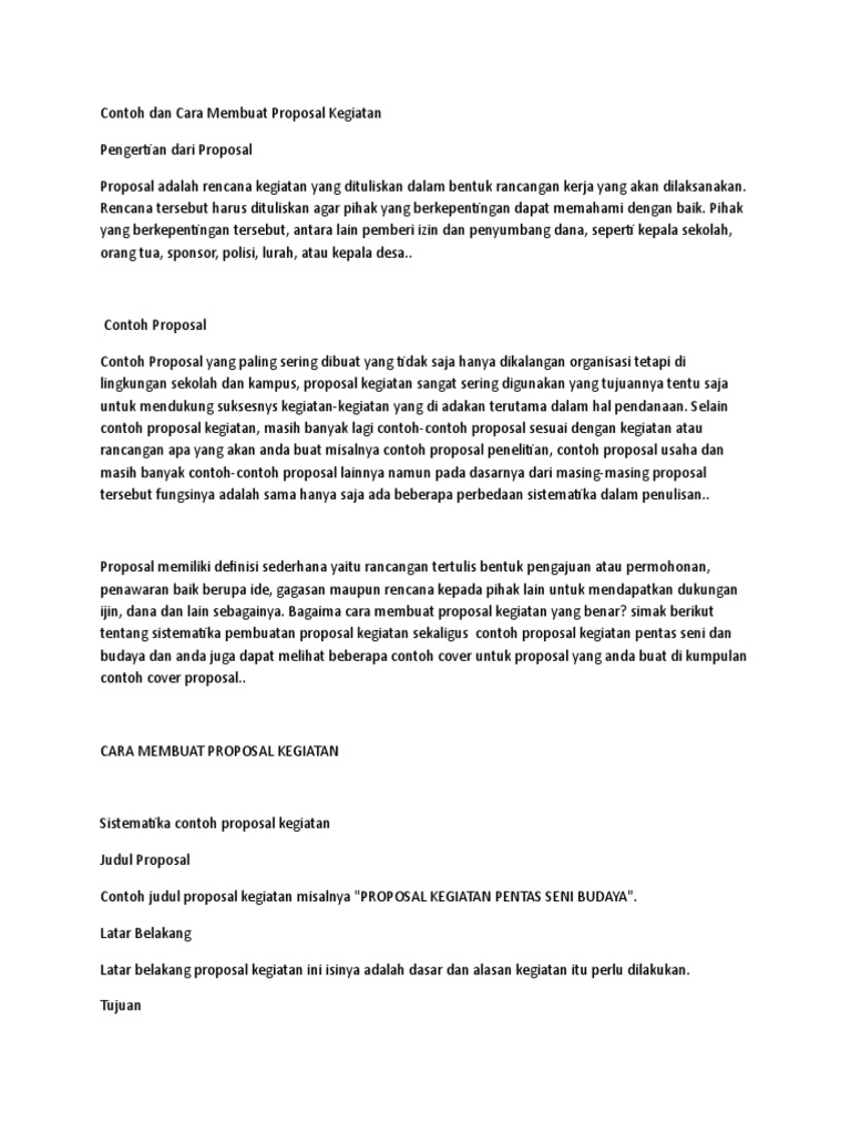 Contoh Proposal Kegiatan Terbaru Dan Sistematika Penulisan 2019