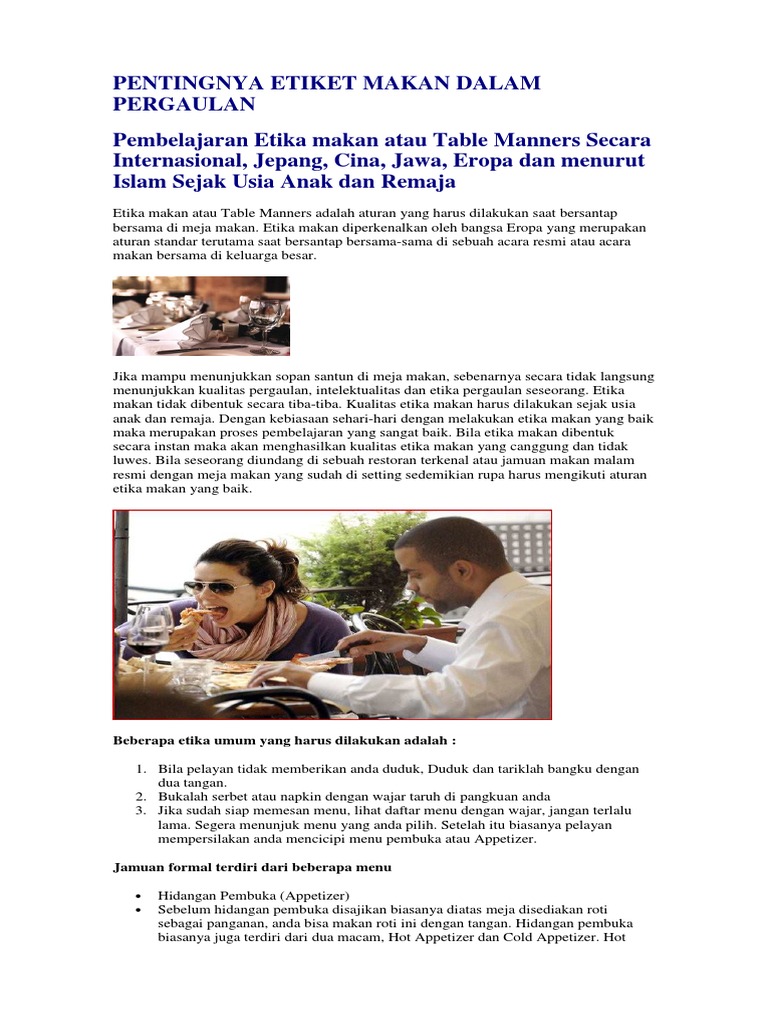 Pentingnya Etiket Makan Dalam Pergaulan