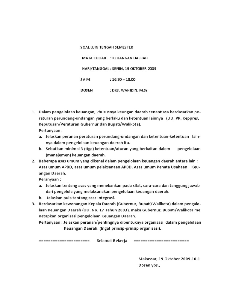 Soal Ujin Tengah Semester
