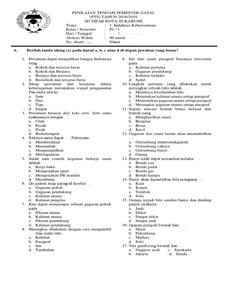 PTS Semester 1 Kls 4 k13