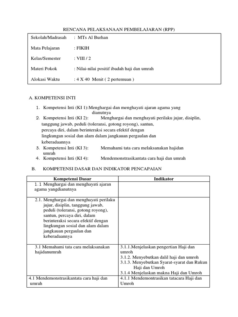 Rencana pelaksanaan pembelajaran haji dan umrah