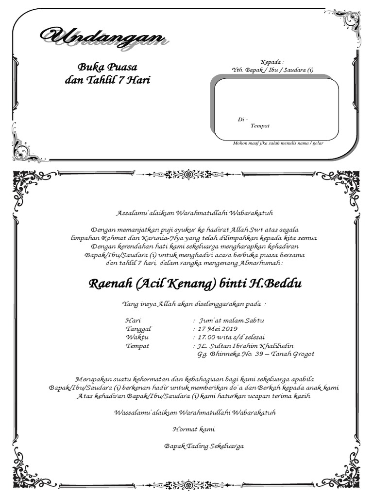 DOC) Contoh Undangan Tahlilan 40 Hari Meninggalnya | Haekal Iqbal - Academia.edu