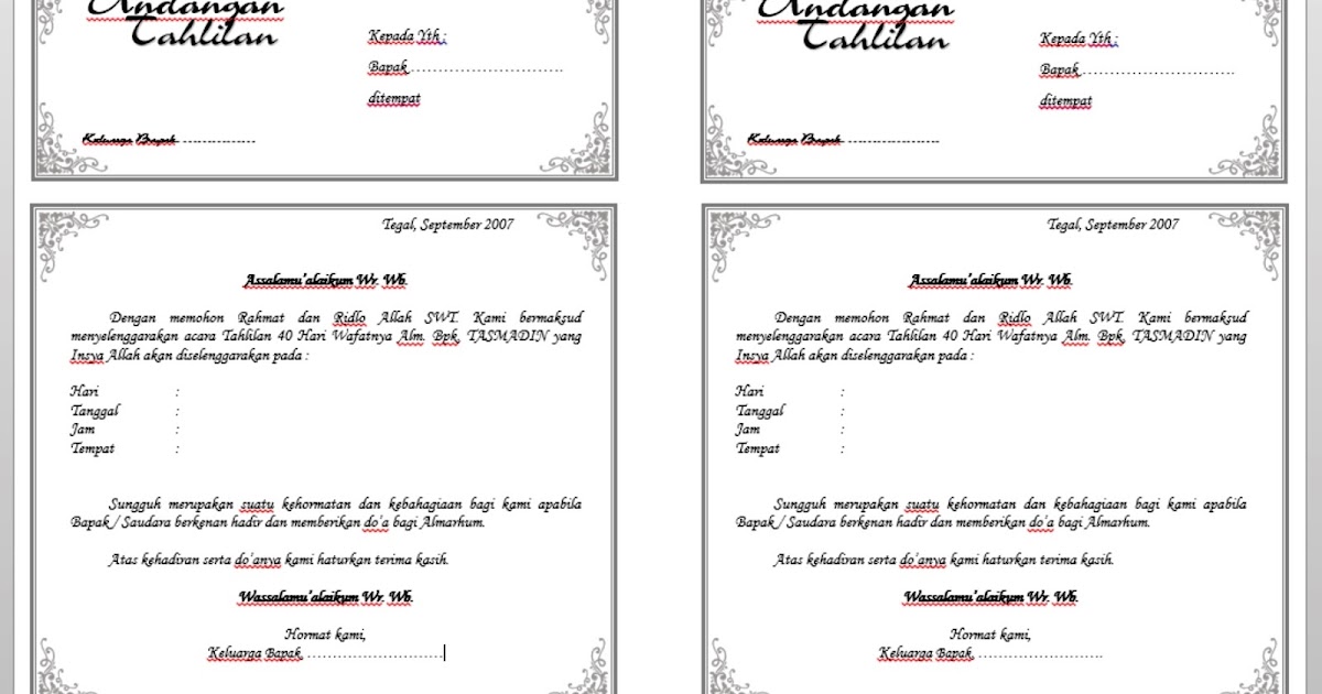 Contoh Surat Undangan Tahlil 40, 100, 1000 hari (haul).doc | Microsoft office word, Microsoft word 2007, Microsoft word 2010