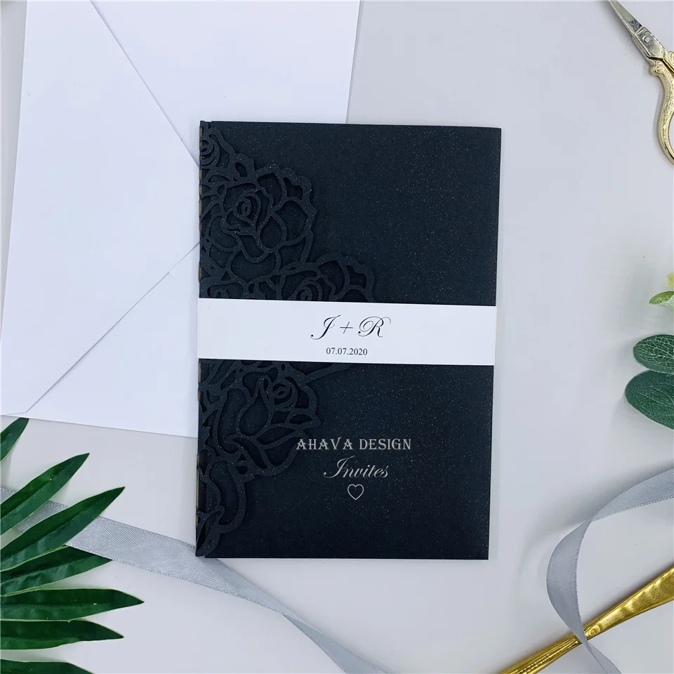 Modern Yang Elegan Hitam Laser Cut Undangan Pernikahan dengan Perut Putih Band Kartu RSVP dan Amplop|Kartu & Undangan| - AliExpress