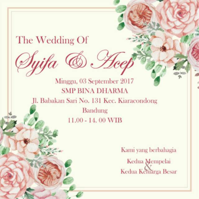 Jasa Undangan Digital Sukawarna - Sukajadi Kota Bandung (40164) - Calon Mempelai
