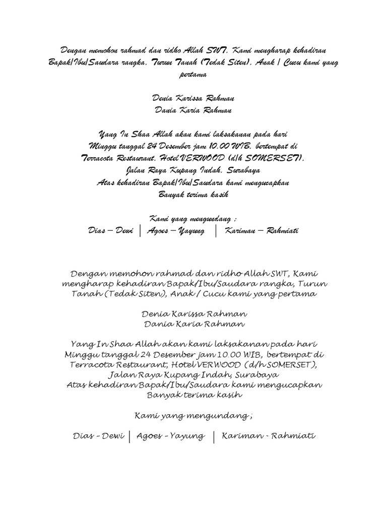Contoh Undangan Turun Tanah Atau Tedak Siten Word - Rofik.my.id