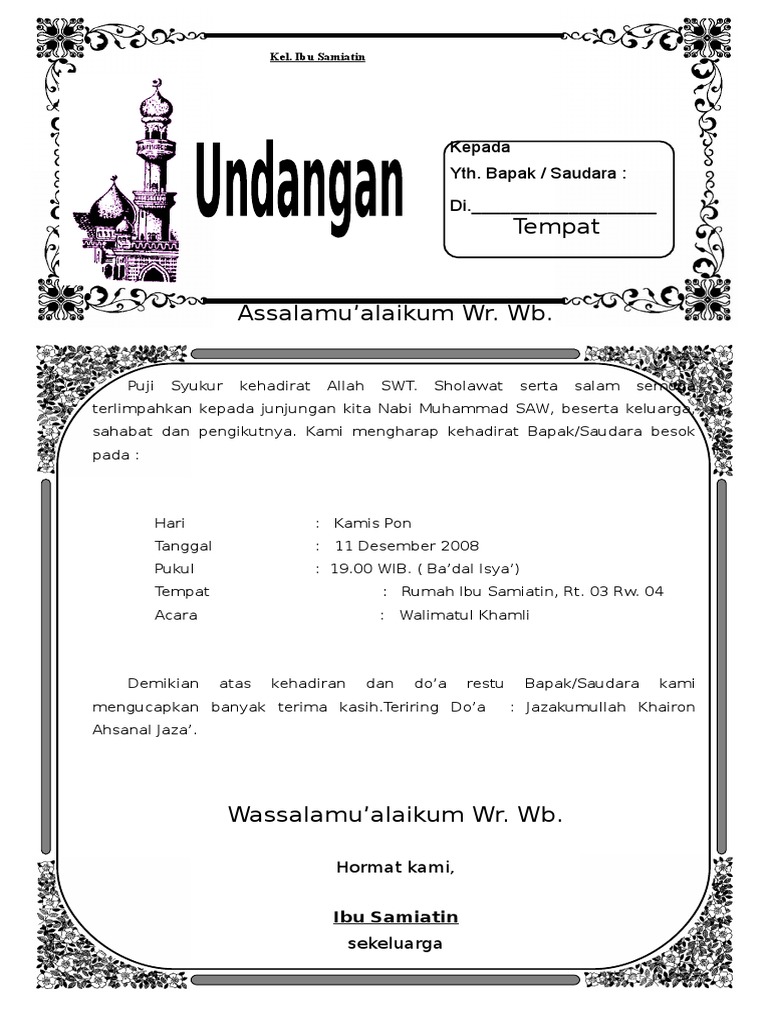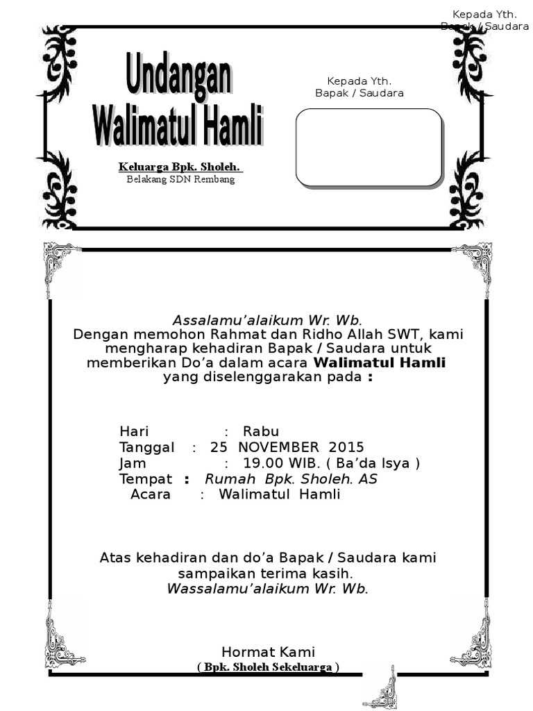 Contoh Undangan Walimatul Hamli Dalam Bentuk Word