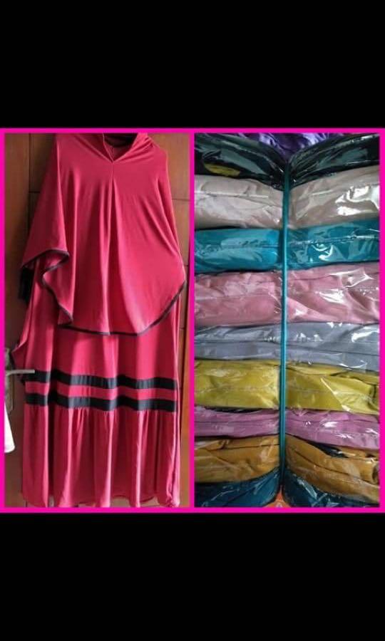Set syari gamis+hijab bahan lemon skin, Fesyen Wanita, Muslim Fashion, Lainnya di Carousell