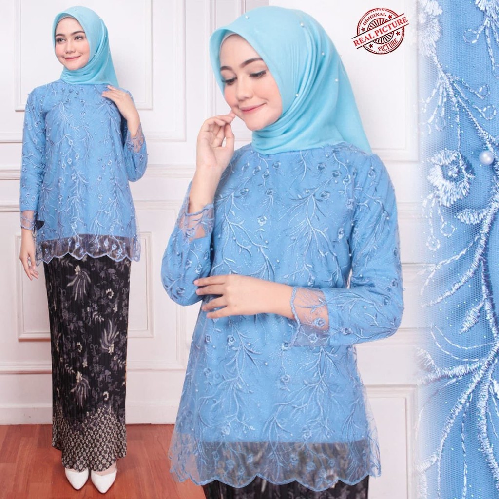 DN- Super Murah! setelan baju wisuda kebaya priska biru undangan pesta plisket 02 kt | Shopee Indonesia