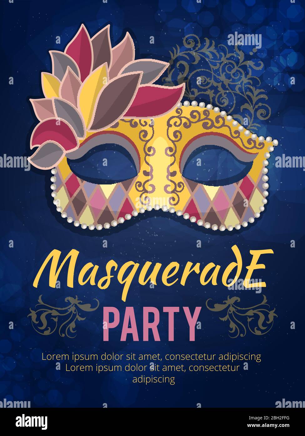 Beauty poster illustration of mask with feather. Design template invitation carnival party. Festival carnival mask poster vector Stock Vector Image & Art - Alamy