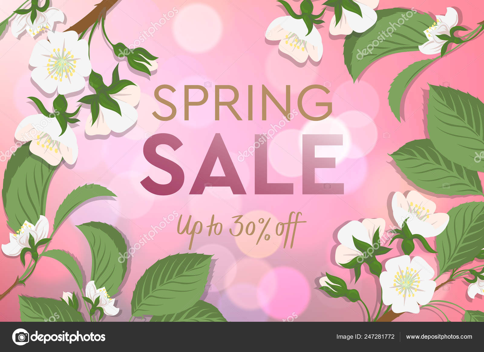 Spring Sale poster with blooming cherry. Design template card for the hotel, beauty salon, spa, restaurant, club. Vector illustration. — Stock Vector © ikopylove #247281772