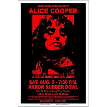 Amazon.com: Raw Sugar Art Studio Alice Cooper/J Geils Band 1972 Akron Concert Poster: Posters & Prints