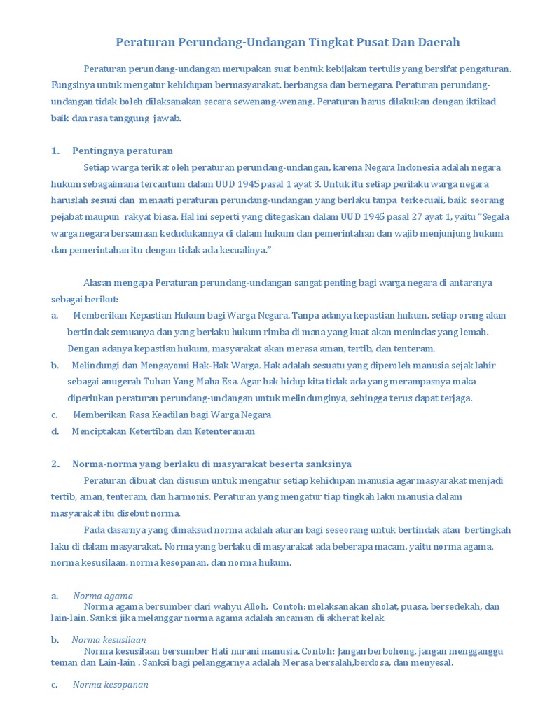 Contoh peraturan perundang-undangan tingkat pusat dan daerah - PDF Free Download