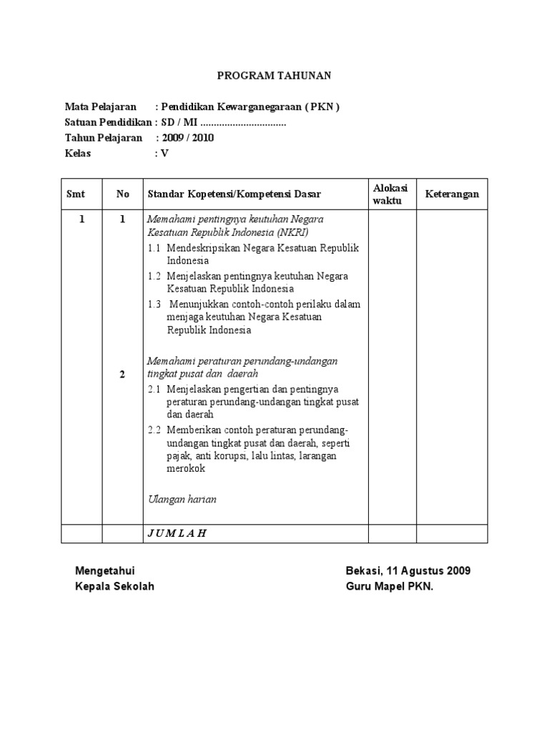 5. Program Tahunan PKN Kelas 5