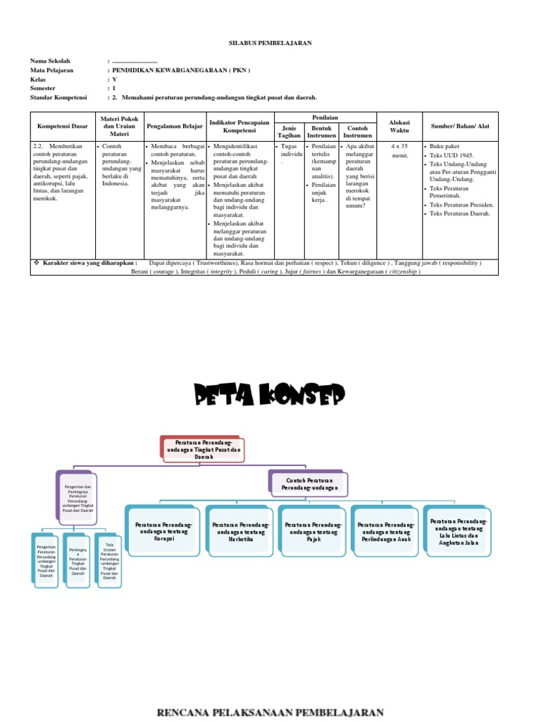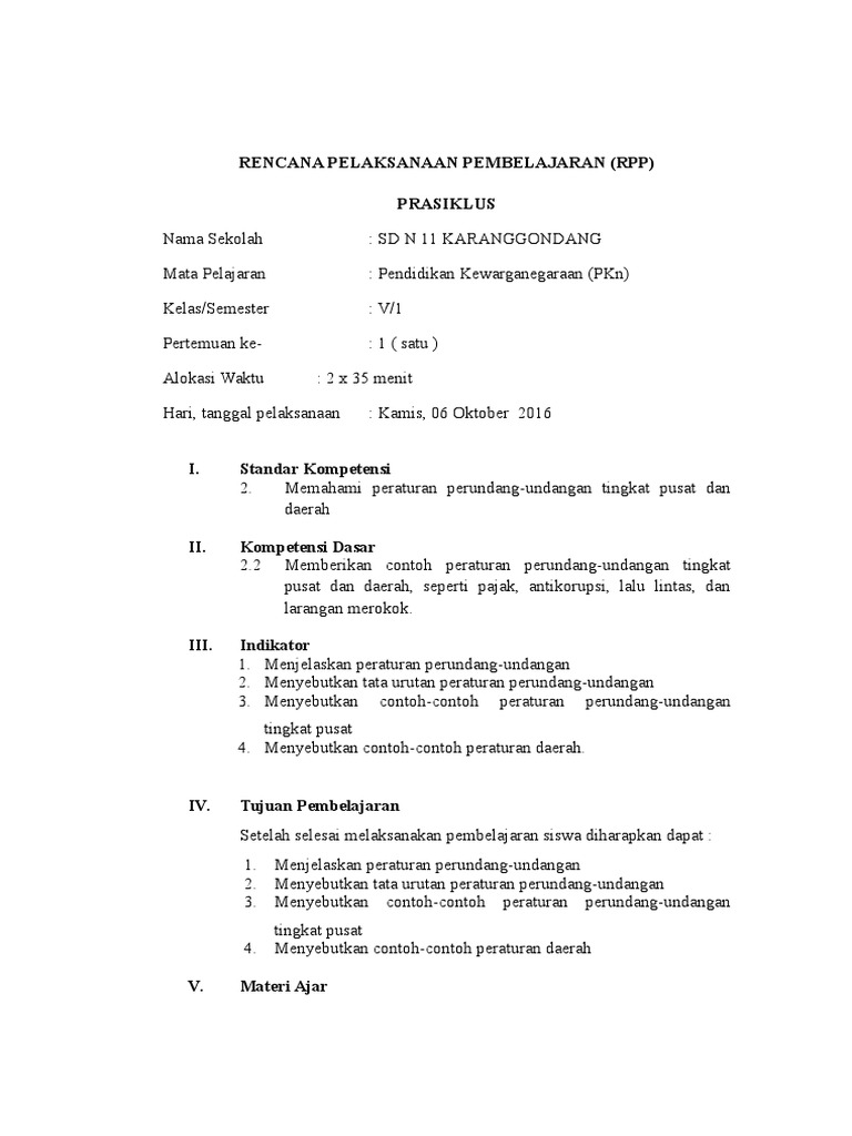 Contoh RPP PKN Kelas 5 SD peraturan perundang-undangan tingkat pusat dan daerah - RIFANFAJRIN.COM