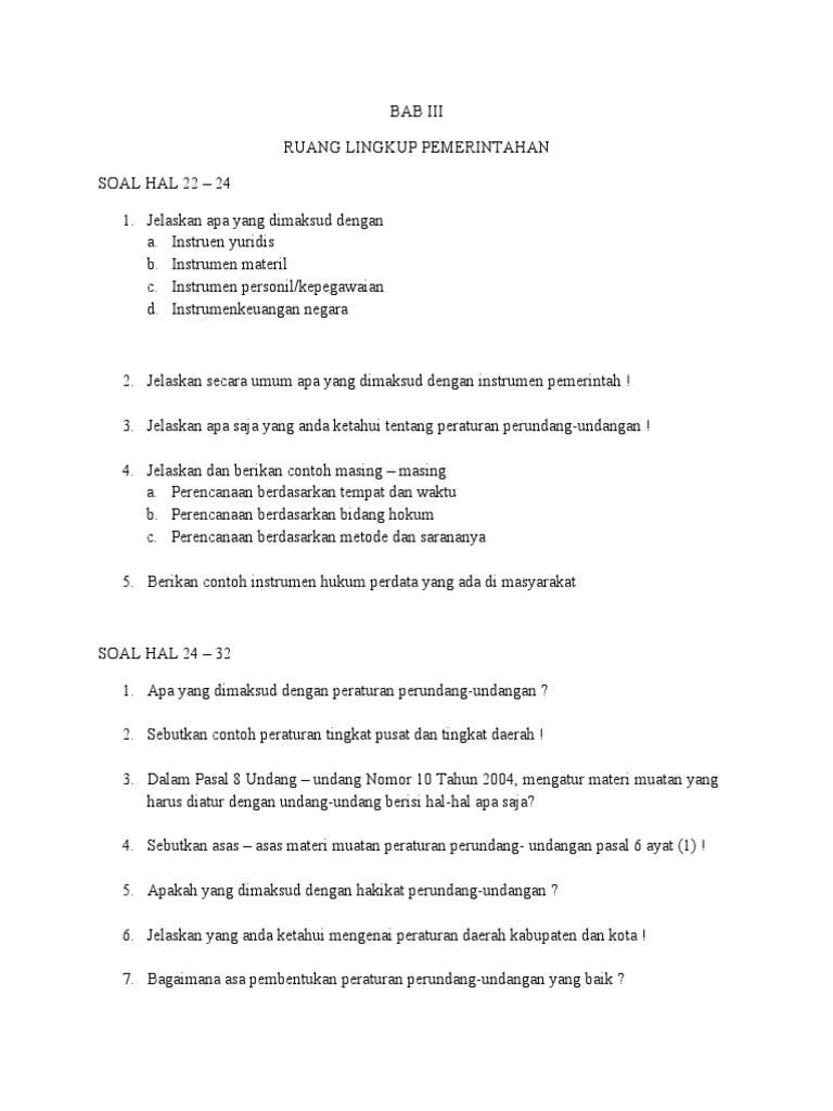 Soal Peraturan Perundang-Undangan Tingkat Pusat Dan Daerah