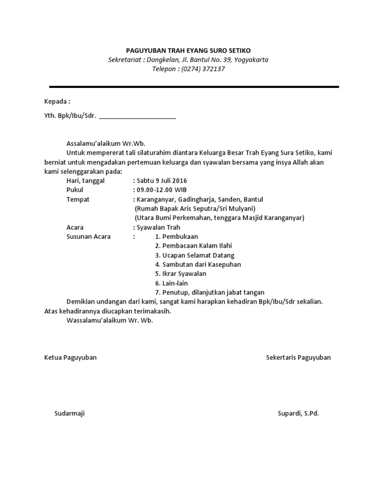 DOC) contoh surat undangan MUSYAWARAH KELUARGA | rahmat hidayatullah - Academia.edu