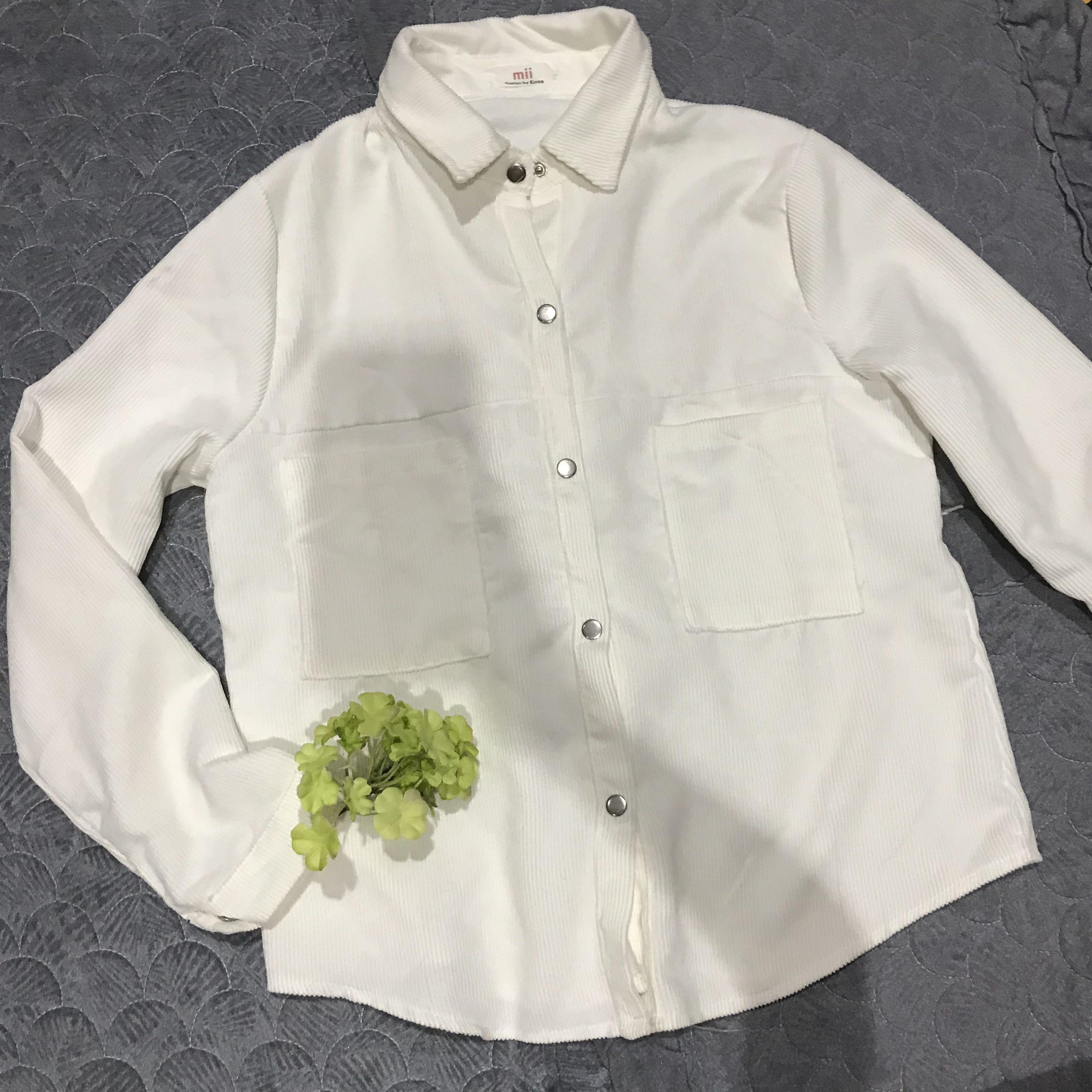 White Corduroy Long Sleeve Blouse, Women’s Fashion, Clothes, Tops …