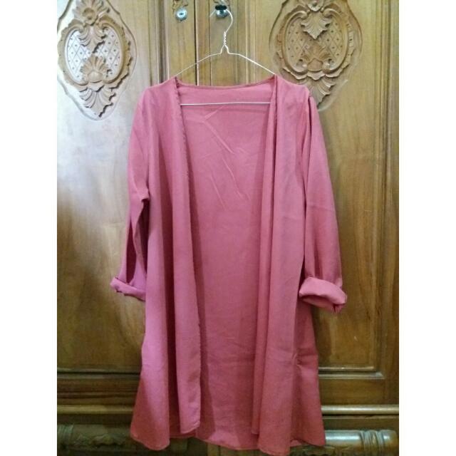 Outer Pink. Bahan Sifon Tebal Tidak Menerawang Sangat Dijamin Masih Bagus, Fesyen Wanita, Pakaian Wanita di Carousell