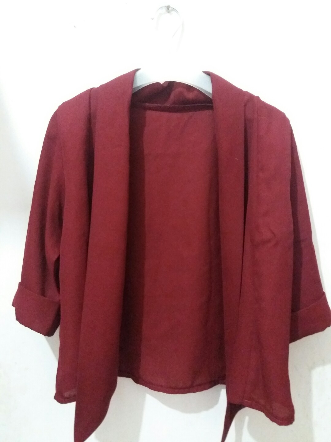 Outer maroon. Bahan sifon tebal tidak menerawang, Fesyen Wanita, Pakaian Wanita di Carousell