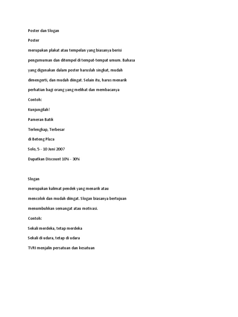 Contoh Kalimat Yang Digunakan dalam Poster Dan Jenis - Jenis …