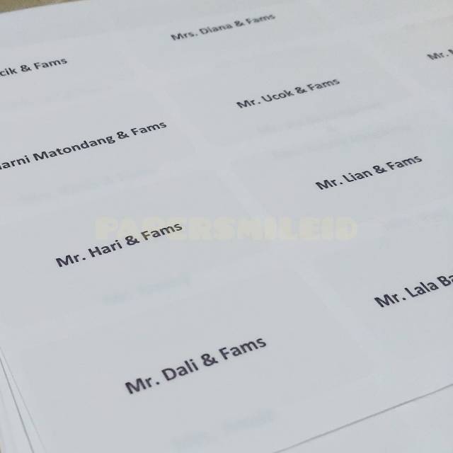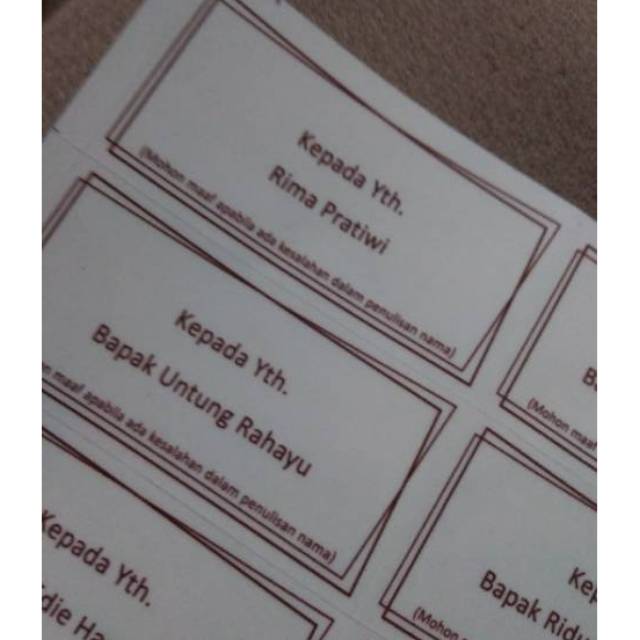 Jual Stiker/Label Nama Ketikan Untuk Undangan Pernikahan - MdPrinting