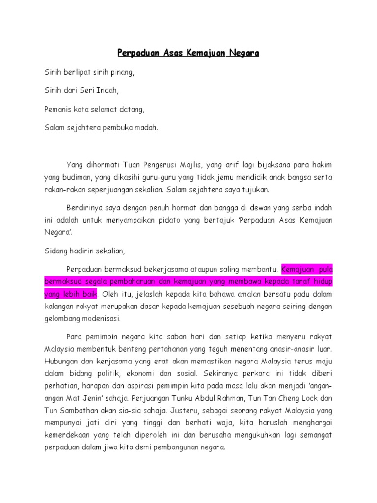 Teks Pidato - Perpaduan Asas Pembangunan Negara.docx
