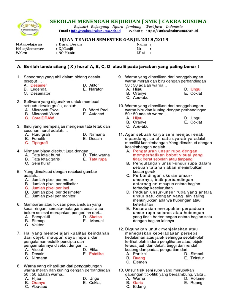 Contoh Soal Desain Grafis Kelas 11 Semester 2 - Dapatkan Contoh