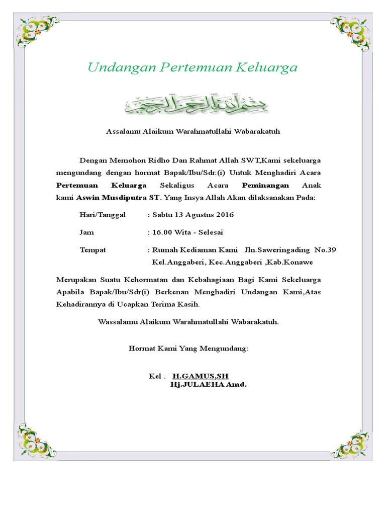 Contoh Undangan Reuni Keluarga Pdf