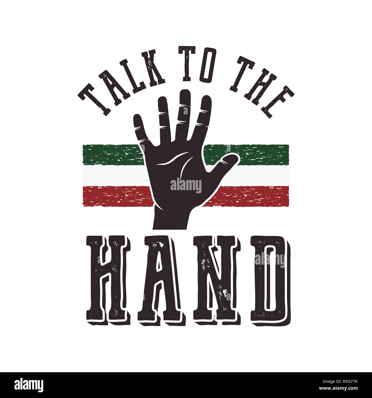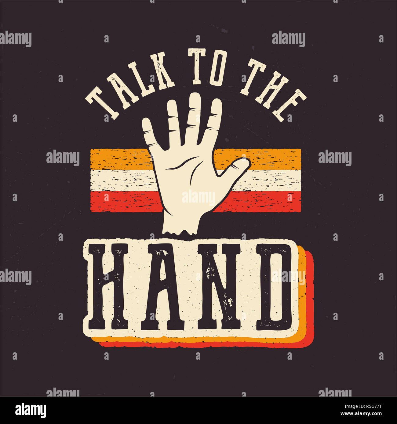 Talk to the Hand. The 90s style label, retro poster. Vintage hand drawn Nineties t shirt print design. Stock illustration isolated on dark background Stock Photo - Alamy