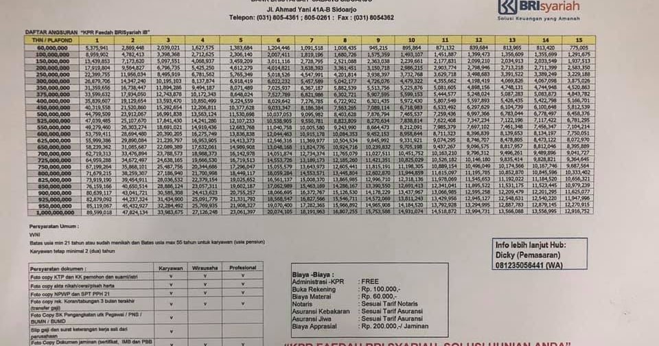 Informasi Tabel Angsuran KPR BRI Syariah Oktober 2020 - Data Arsitek