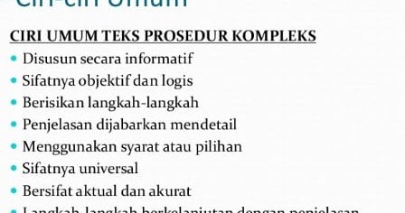 buatlah simpulan tentang ciri umum teks prosedur di tinjau dari tujuan dan isi teks prosedur! - Brainly.co.id