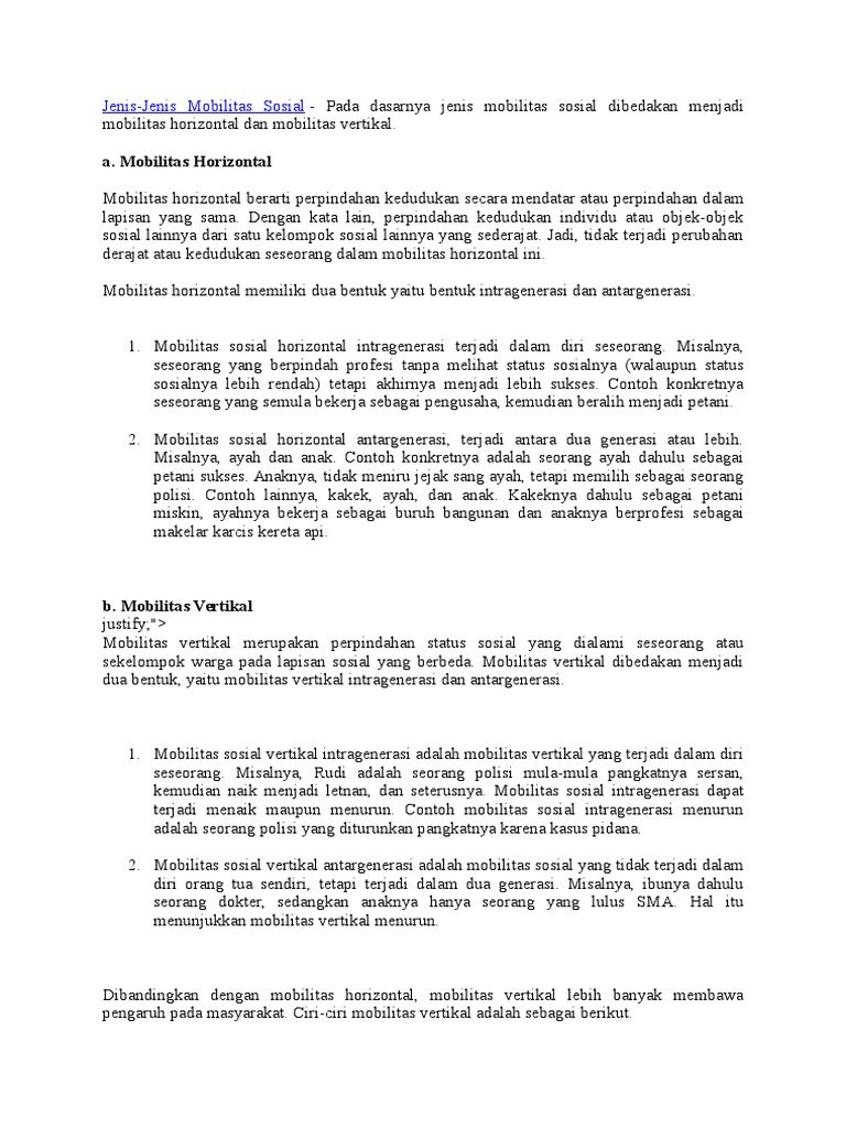 Mobilitas Sosial Horizontal Dan Mobilitas Horizontal Vertikal