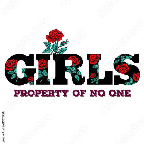 Girl Slogan Fashion stripes, clothes for T-shirt with printed graphic design. Vector A set of stickers, embroidery, applique in the style of ancient breeds. - Buy this stock vector and explore similar