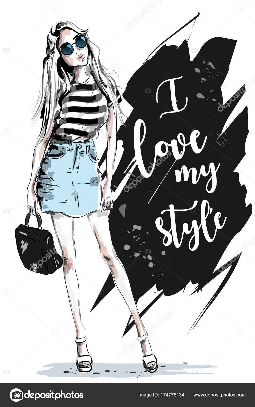 Fashion Woman Slogan Background Stylish Beautiful Girl Fashion Clothes Sketch — Stock Vector © Marisa_ #174776134
