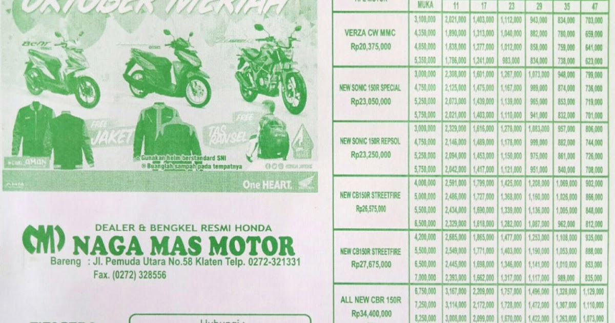 BROSUR KREDIT MOTOR HONDA KLATEN TERBARU 2020 | Dealer Motor Honda Katen