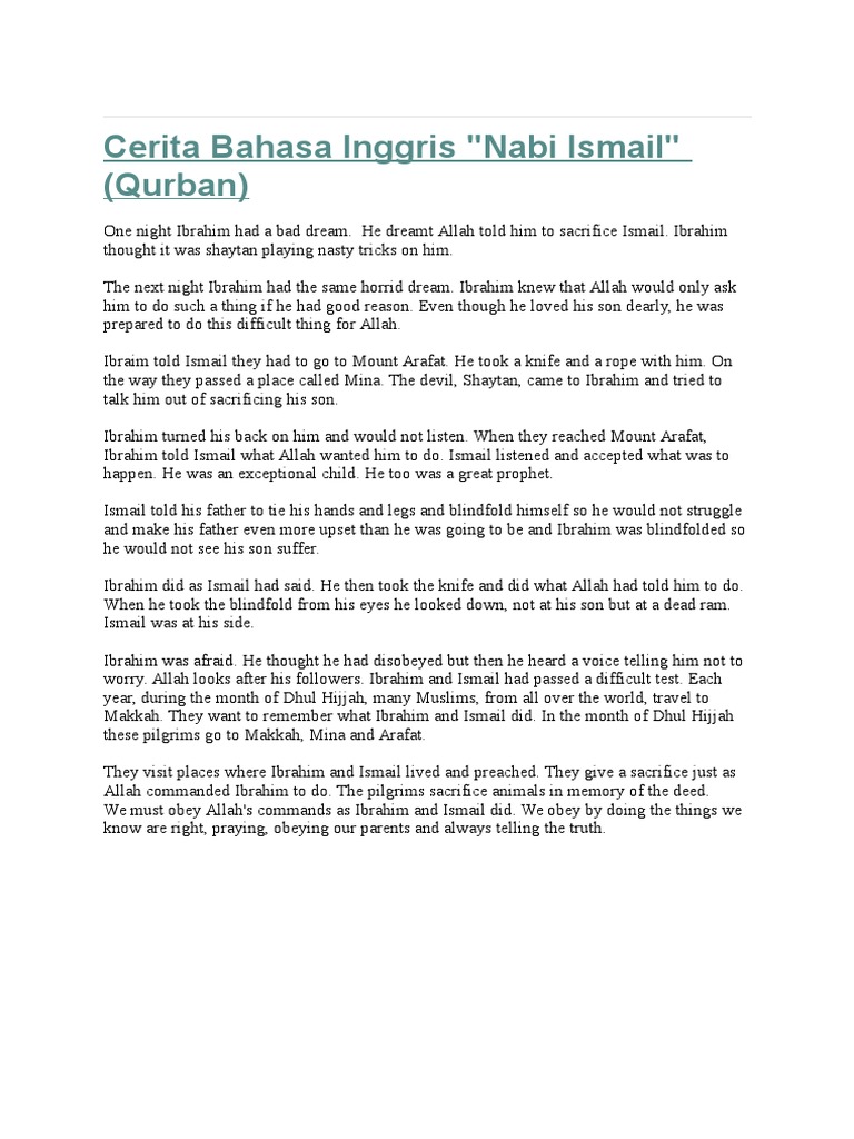 Buatlah cerpen yang bertema perintah qurban dengan singkat,jelas dan dengan bahasa yang benar dan - Brainly.co.id