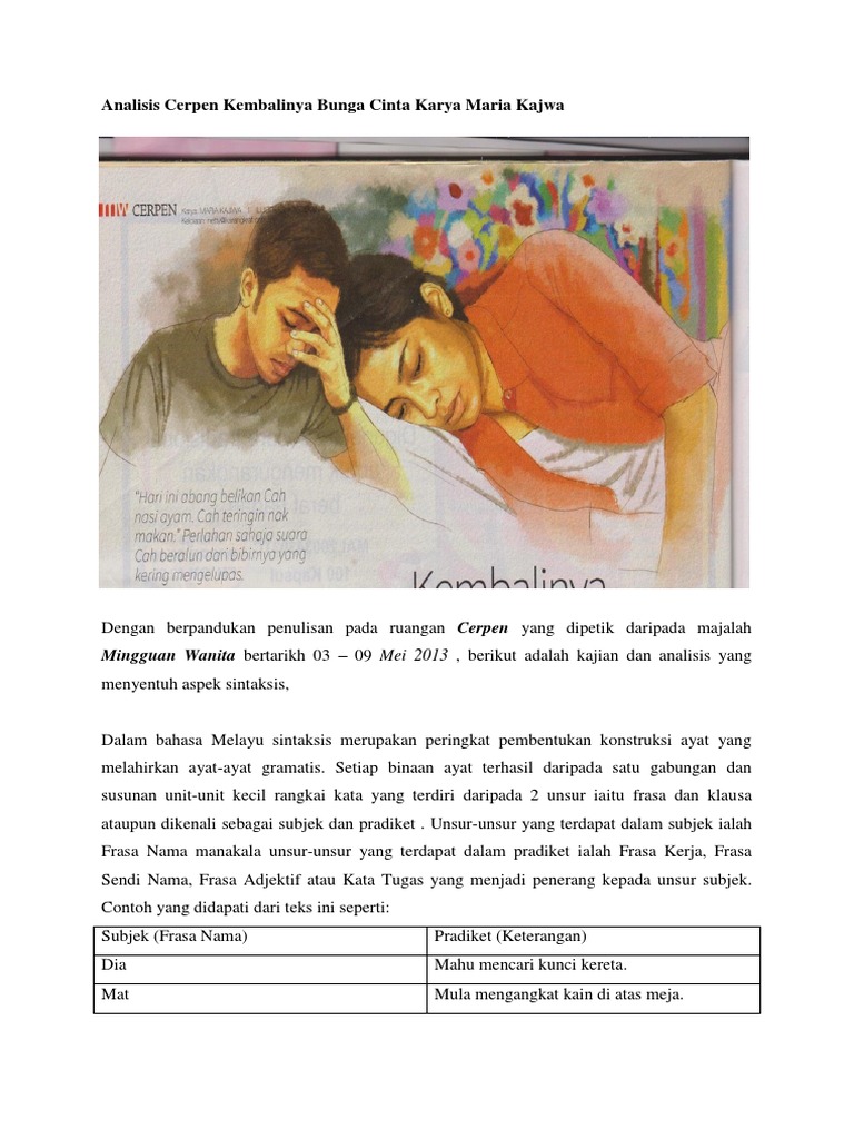 Analisis Cerpen Kembalinya Bunga Cinta Karya Maria Kajwa
