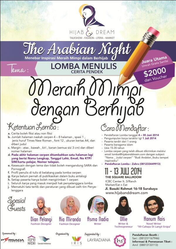 Event Surabaya on Twitter: “Lomba Cerpen @hijabanddream berhadiah umroh senilai $2000 . Daftar zahra 081233449913 http://t.co/oLnm8JGCBF”