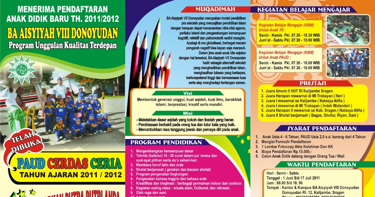 Contoh Brosur Pendaftaran PAUD dan TK Islam Terpadu Full Warna Lengkap Terbaru - kangjamal.com