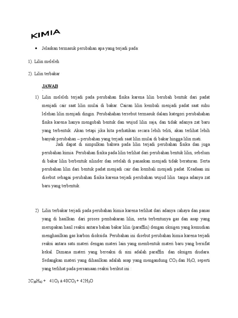 DOC) PERUBAHAN PADA PEMBAKARAN LILIN | Monika Tiara - Academia.edu