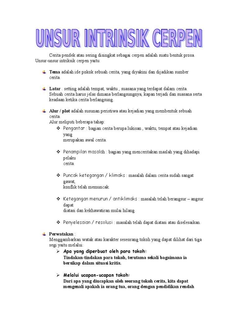 DOC) Unsur Intrinsik dan Ekstrinsik Cerpen | Om Kita - Academia.edu
