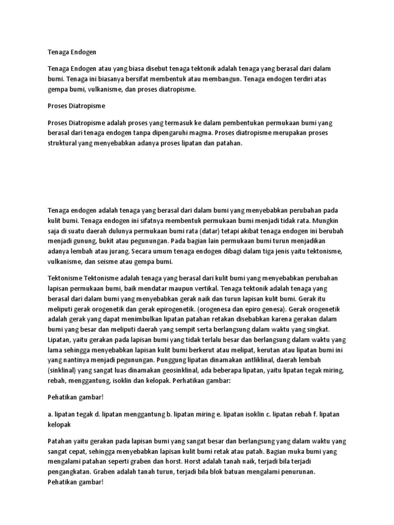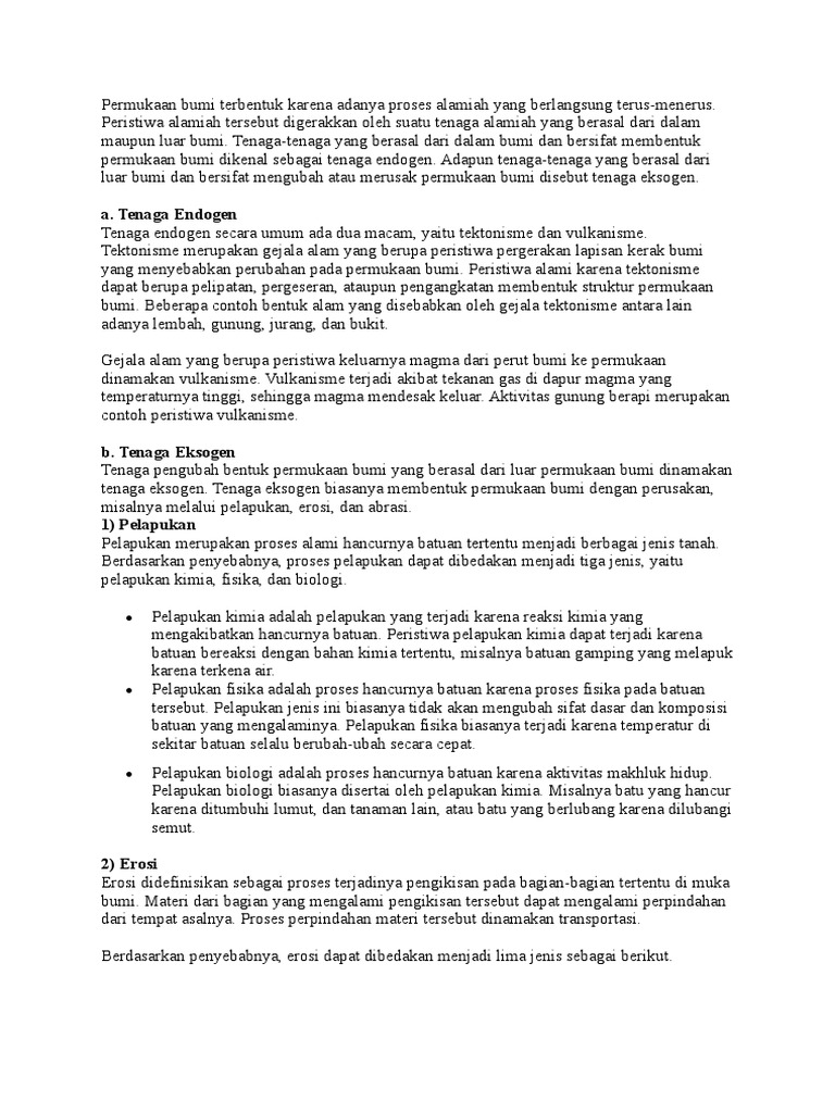 Relief Muka Bumi: A. Tenaga Endogen dan Eksogen Tenaga Endogen